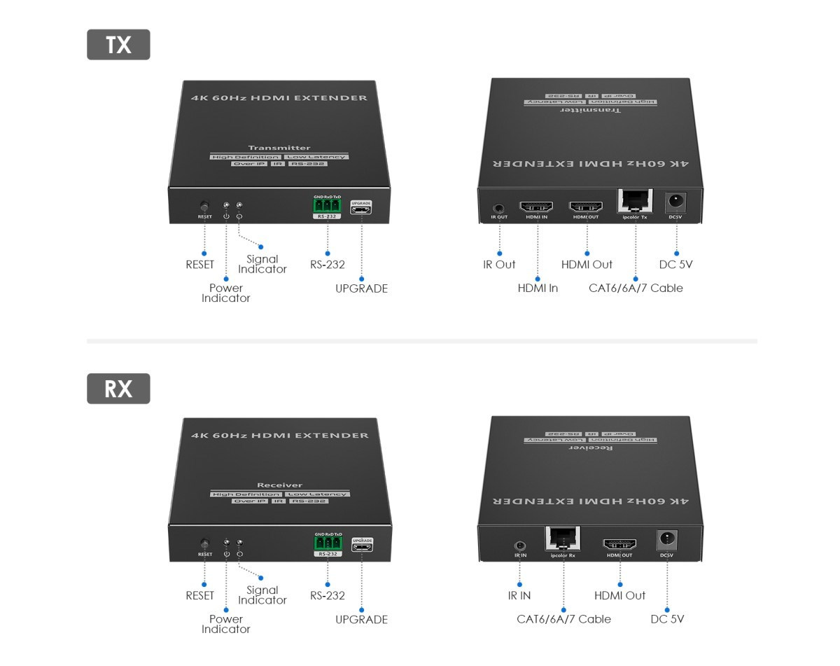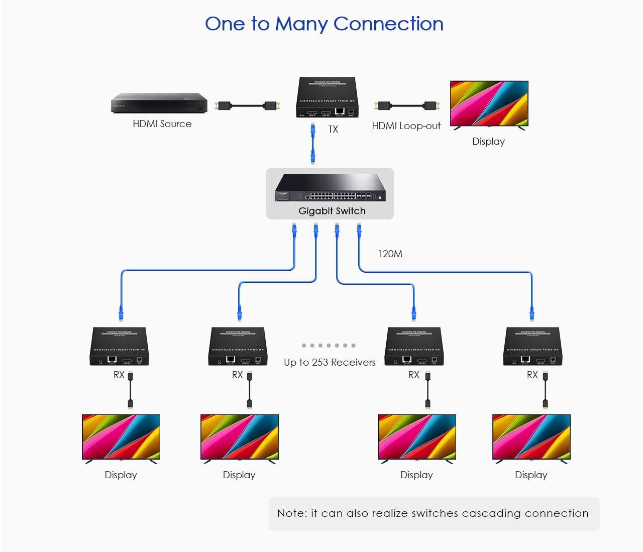 Popis PremiumCord HDMI extender na 120m přes LAN, nekompresovaný, 4K@60Hz, přes IP
