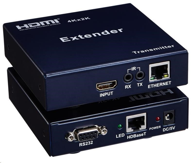 Zařízení umožňuje po jednom síťovém kabelu nebo prostřednictvím LAN sítě přenést HDMI 4K nebo FULL HD signál až na 100m a současně řídící signály IR dálkového ovladače, RS232 a počítačovou síť ethernet