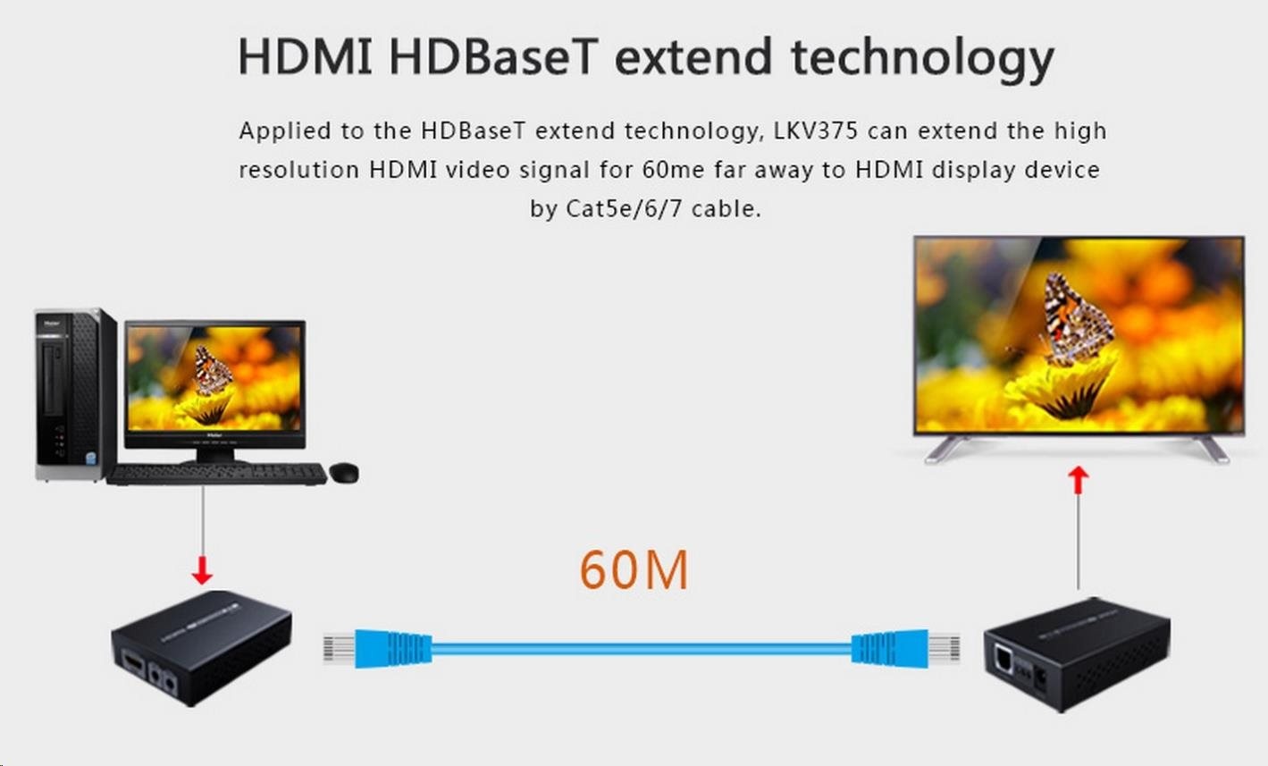 Zařízení umožňuje po síťovém kabelu přenést HDMI 4K x 2K nebo FULL HD 1080p signál až na 70m.