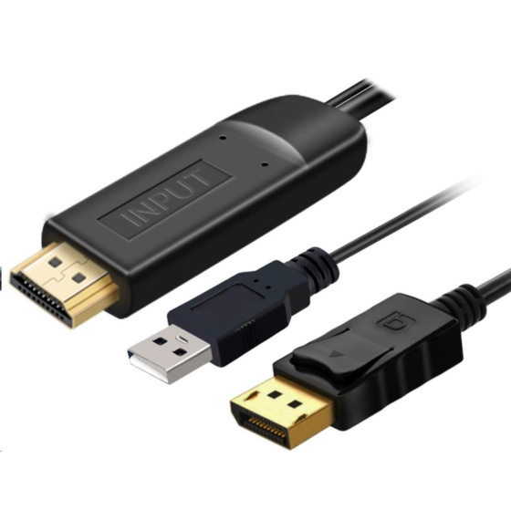 - Kabel slouží pro propojení HDMI zdroje signálu s monitorem nebo promítačkou se vstupem DisplayPort.Kabel má integrovaný elektronický převodník signálu HDMI - > DP.