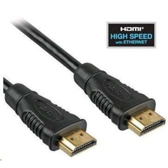 Kvalitní propojovací kabel pro spojení dvou audio/video zařízení přes moderní HDMI rozhraní, jako je např. HD-DVD/BluRay přehrávač a LCD/Plazma televizor. Kabel je stíněný, dokáže přenášet digitální zvuk i obraz a podporuje digitání ochranu obsahu HDCP. Kabel má navíc integrován vysokorychlostní přenos ethernetu. - Kabel byl dříve označován jako HDMI 1.4 High Speed , dle nové direktivy je správně označován jako HDMI Ethernet kabel - Pozlacené konektory: HDMI typ A (19pinů) male <=> HDMI typ A (19pinů) male - Délka kabelu: 10 m - Rozlišení: Až 4096 x 2160 bodů nebo nižší podporované formáty 1080p FULL HD/1080i/720p/720i - Podporuje : HDMI 1.4 a nižší - Podporuje: 4K, Deep Color, 3D, xvYCC (xvColor), auto lip-sync, ARC, CEC, HDCP, Dolby TrueHD, HEC - Přenosová rychlost 10,2 Gb/s - Šířka pásma 340MHz - 3D video po HDMI připojení - Barevná hloubka: 24-bit (16.7 million barev). - Třívrstvé, vysoce kvalitní stínění - Zpětný audio kanál pro poslání signálu z tuneru TV zpět do domácího kina/surround systému - Přenos počítačové sítě (ethernetu) po HDMI kabelu - 19žilový kabel, dvojitě stíněný, AWG28 - barva černá.