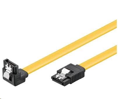 SATA 3.0 datový kabel s kovovou západkou proti vytažení na jedné straně a jedním zahnutým konektorem