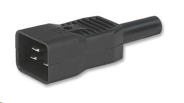 Konektor síťový 230V Male (samec) - šroubovací (nelisovaný) - IEC60320, C20 počítačový napájecí konektor 230V - 3 piny - maximální proud 16A - plastové provedení s kovovou vložkou - 12.5 mm maximální průměr kabelu.