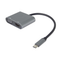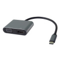Tento adaptér umožňuje vysoce kvalitní převod videa a zvuku z USB-C konektoru na HDMI a VGA konektor pro dva monitory/TV/projektory. Funguje jako externí grafická karta s dvěma výstupy.