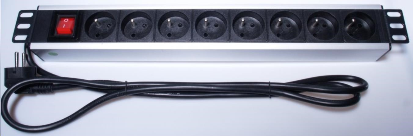Panel napájecí do 19" racku, 8x230V, 2m kabel, vypínač - provedení z eloxovaného hliníku - horizontální pro montáž do 19" Racku - výška 1,5U - 8x 230V zásuvka - maximální proud: 16A - UTE zásuvky - 1.5mm2 průřez kabelu - délka kabelu 2m - vypínač prosvětlený s plastovou krytkou proti náhodnému vypnutí - rozměry : šířka s pevnými úchyty: 485mm, výška: 61mm, hloubka: 44mm - pracovní teplota: 0-40°C - napájecí panel obsahuje sáček s kompletní sadou šroubů pro instalaci do 19' racku.