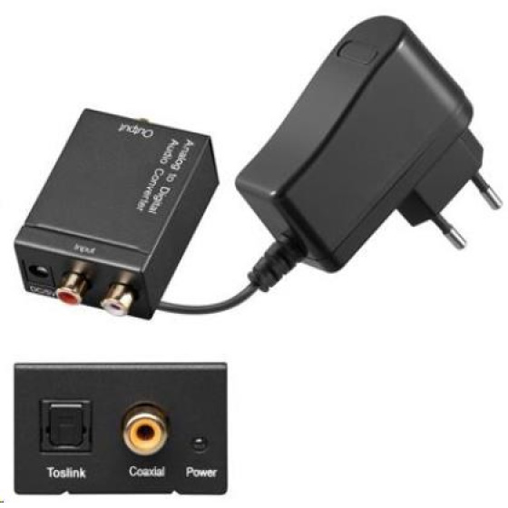- Převádí analogový stereo signál 2x CINCH na digitální signál (coaxial SPDIF ) a optický ( Toslink )