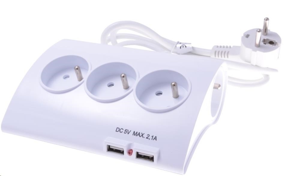 PREMIUMCORD Prodlužovací přívod 230V 1,5m 5zásuvek+vypínač+2x USB 2A
