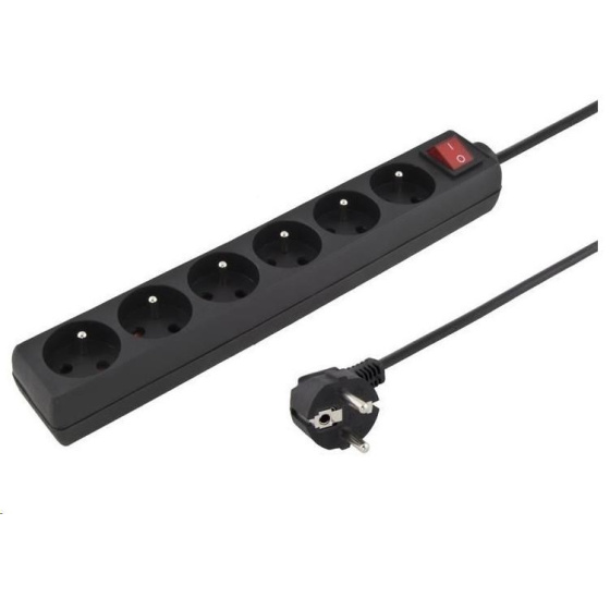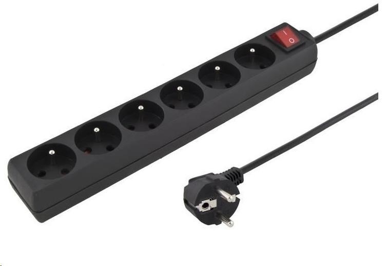 PremiumCord Prodlužovací přívod 230V 3m 6 zásuvek + vypínač, černý