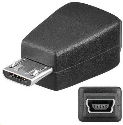 USB redukce Mini 5 PIN/female - Micro USB/male - redukuje Mini USB konektor na Micro USB konektor - redukce se může nasadit na USB kabel s Mini 5pin. konektorem a umožňuje připojení zařízení s Micro USB konektorem - pro připojení digifoto, mp3, mobilních telefonů.....a jiných zařízení s Micro USB konektorem.