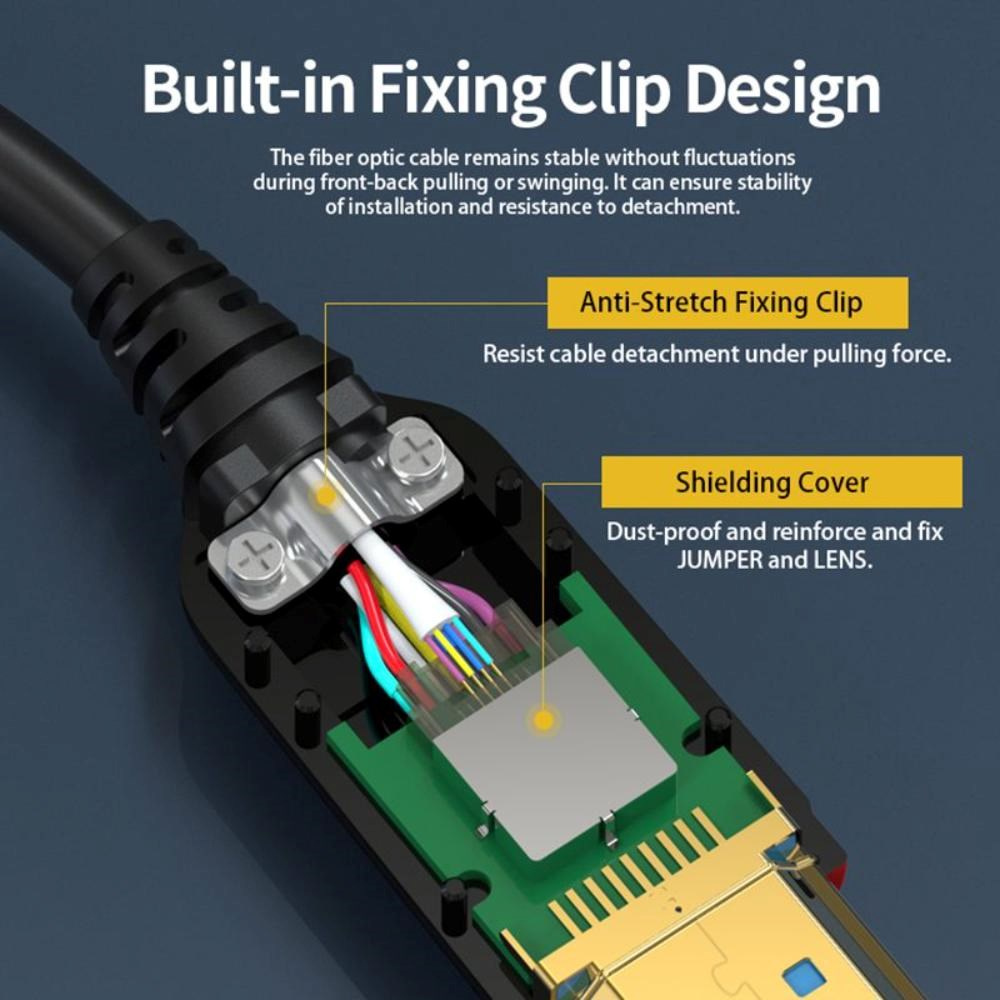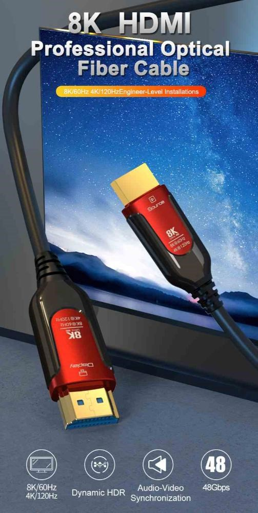 - HDMI 2.1 Ultra High Speed aktivní optický fiber kabel, podporuje HDMI2.1 nebo nižší HDMI2.0 a HDMI1.4