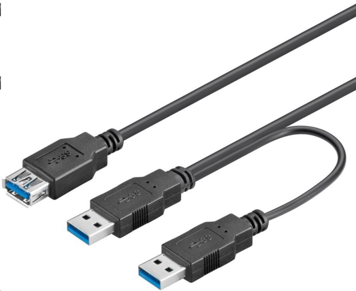 PremiumCord USB 3.0 napájecí Y kabel A/Male + A/Male -- A/Female DUÁLNÍ (extra napájení)