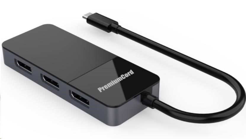 PremiumCord MST adapter USB-C (DP1.4) na 3x DP1.4 monitory 8K@60Hz, extended + mirror + duplicate režimy