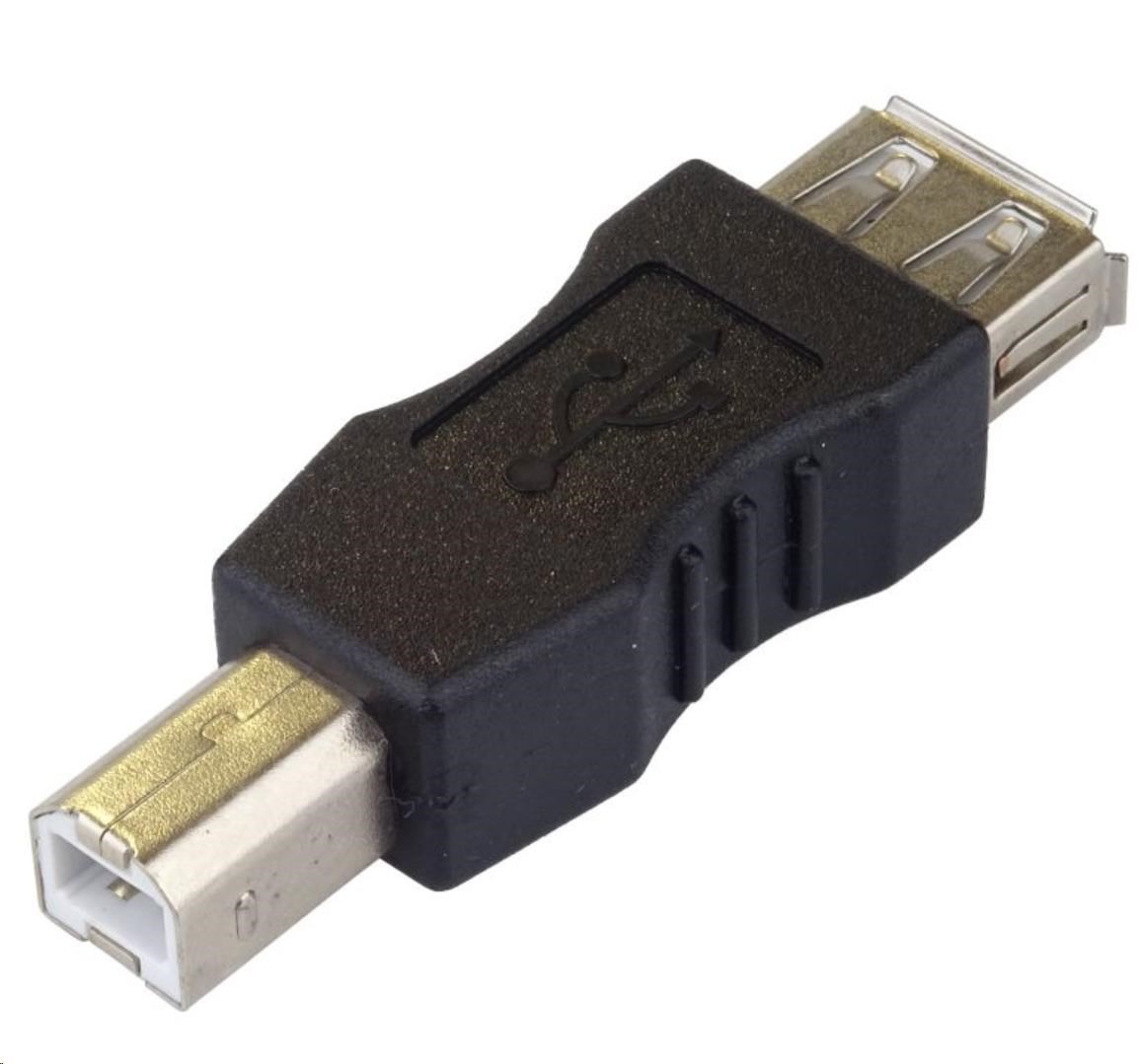 PremiumCord USB redukce A-B, Female/Male konektory Female-Male Plochý USB konektor je typu A, USB konektor ve tvaru čtverečku je typu B.