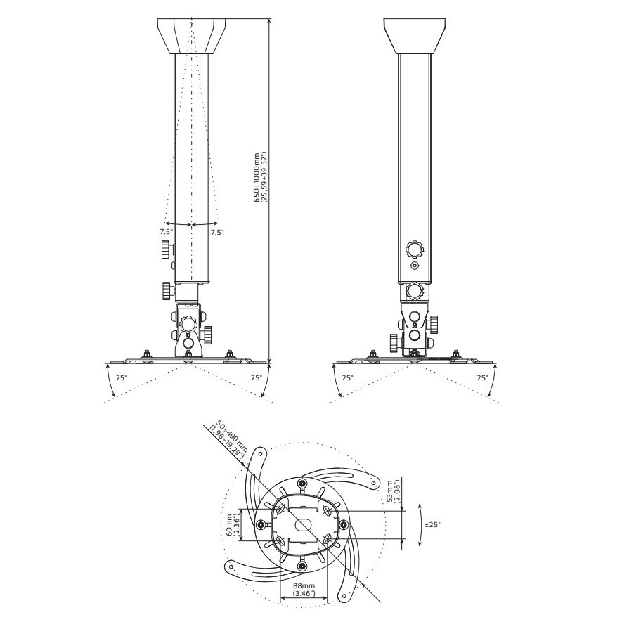 Popis Profesionální designový stropní držák na projektor EDBAK PMV200