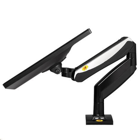 Profesionální kancelářský držák LCD monitoru Fiber Mounts F85A Kancelářský držák na PC monitory 19÷32", nastavení výšky, otáčení, náklon, rotace, korekce roviny, 2 typy uchycení na stolovou desku, USB konektory, systém vedení kabeláže Profesionální stolní držák pro uchycení a polohování PC Lcd monitorů s úhlopříčkou 19 až 32 palců. Držák Vám umožní 3D polohování obrazovky monitoru: otáčení do stran, náklon, nastavení vzdálenosti od stolního uchycení, výškovou polohovatelnost, rotaci monitoru. Držák je osazen USB konektory a má systém pro vedení kabeláže. V balení naleznete 2 typy uchycení na stolovou desku o průměru až 90mm: na kraj stolu nebo do prostoru stolu. Držák podporuje VESA standardy 75x75 a 100x100, v případě potřeby je možné dokoupit rozšíření na 200x100 nebo i 200x200. Zavěsit můžete veškeré monitory a televizory s hmotností 2 až 8kg. Výškovou polohovatelnost zajišťuje plynový píst s nastavitelnou tuhostí - snadná regulace. Profesionální kvalita a krásný design držáku Fiber Mounts F85A umožní použití ve firmách, kancelářích, pracovnách, ale i domácnostech a dětských pokojích. Technické údaje: zatížení 2÷8kg podporuje VESA standardy 75x75 a 100x100 možnost rozšíření VESA na 200x100 nebo 200x200 doporučujeme na monitory a televizory s úhlopříčkou 19 až 32" otáčení do stran +/-90° náklon: nahoru +55°, dolů -8° celková výška 500mm výšková polohovatelnost v rozmezí 295mm maximální vzdálenost od stolního uchycení 572mm funkce PIVOT - rotace monitoru, nastavení horozontální nebo vertikální polohy monitoru korekce roviny monitoru integrované USB konektory součástí balení 2 typy uchycení na stolovou desku: na kraj stolu nebo do prostoru profesionální kvalita snadná nastavitelnost krásný design záruka 2 roky Kancelářský držák na LCD monitory Fiber Mounts F85A podporuje VESA standardy: VESA 75x75 VESA 100x100 možnost dokoupit rozšíření VESA 200x100 možnost dokoupit rozšíření VESA 200x200.