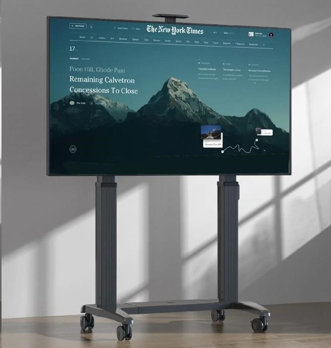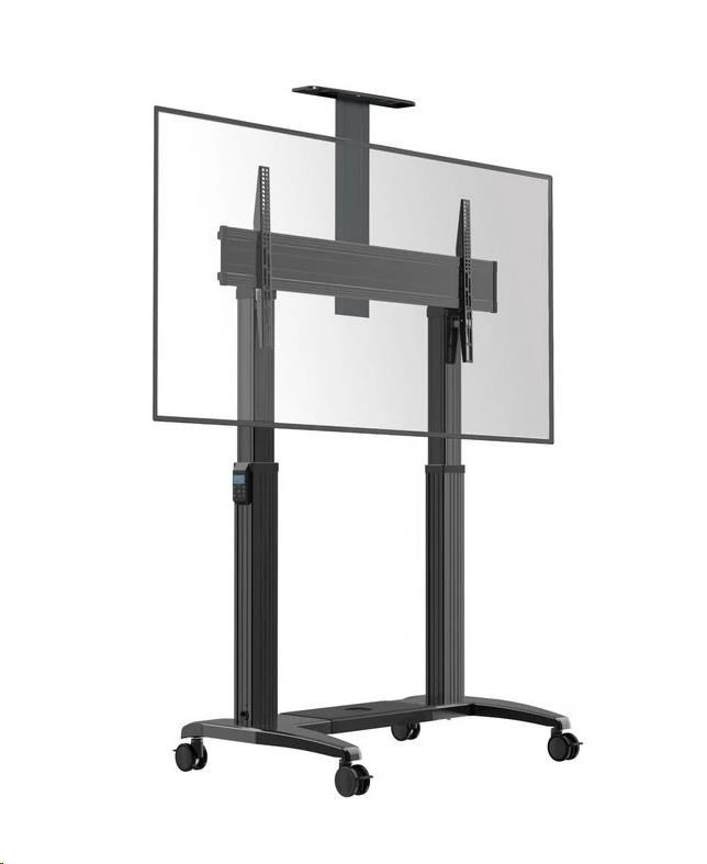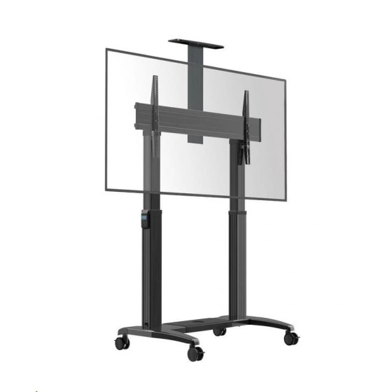 rofesionální Tv stojan NB GF150 Profesionální motorizovaný stojan na Tv 60" - 120", elektrické nastavení výšky 1250-1750 mm, nastavení výšky obrazovky na panelu nebo dálkovým ovládáním, zásuvka na připojení Tv, 2 výkonné 150W motory, horní polička 255x130 mm, kolečka s aretací, podporované VESA standardy 200x200 až 1000x600, nosnost 136 kg Motorizovaný profesionální televizní stojan nejvyšší kvality a v kráném designu. Stojan je ideální na televize, displeje, dotykové obrazovky nebo monitory s úhlopříčkou od 60" až do 120". Umožní vám velmi snadno nastavit přesnou výšku obrazovky buď na ovládacím panelu umístěném na sloupku stojanu nebo dálkovým ovládáním. Možnost uložení 3 výšek do paměti stojanu. V horní části stojanu je integrovaná zásuvka na připojení obrazovky - není tedy nutné připojit do el. sítě zvlášť stojan a zvlášť obrazovku - připojením stojanu budete zároveň napájet i připojené zařízení, navíc není potřeba řešit dostatečnou délku přívodního kabelu. Stojan je dodáván včetně horní police pro umístění příslušenství (kamera, projektor, mini pc apod.) s rozměry 255x130 mm. Tělo stojanu je z hliníku, závěsný systém je ocelový. Podstava stojanu je osazena 4 otočnými kolečky s možností aretace. Stojan má systém pro vedení kabeláže. Tv stojan NB GF150G Technické údaje: nosnost 136,4 kg podporuje VESA standardy od 200x200 až do 1000x600 idální na Tv, monitory, dotykové obrazovky a displeje s úhlopříčkou 60" až 120" minimální výška 1250mm (střed obrazovky) maximální výšky 1750mm (střed obrazovky) elektrické nastavení výšky ovládáním na stojanu nebo dálkovým ovladačem 2 silné 150W motory rozměry podstavy stojanu 1250x840 mm 4 otočná kolečka s aretací systém pro vedení kabeláže na stojanu je integrovaná zásuvka pro napájení obrazovky nejvyšší kvalita, precizní zpracování, krásný design záruka 3 roky.