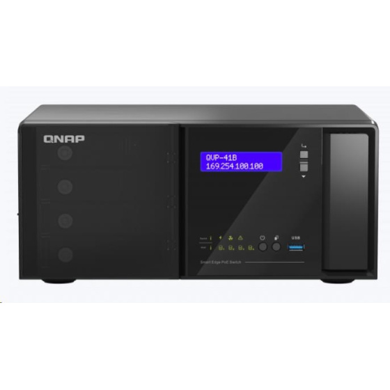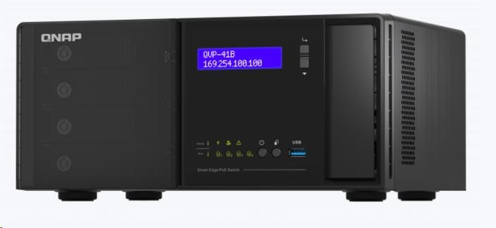 Popis QNAP QVP-41B-8G-P (2C/J4125/2,0GHz/8GBRAM/4xSATA/2xM.2/3xUSB3.2/2xHDMI/16xGbE/2xGbE/SFPcombo/16xPoE+/140W)