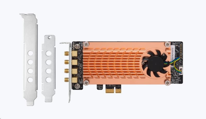 | Obsah balení | 1 x QWA-AC2600 PCIe bezdrátový adaptér, 4 x odnímatelné antény + magnetický stojan, Plnohodnotné a specializované (pro vybrané QNAP NAS) držáky a Rychlý instalační průvodce |