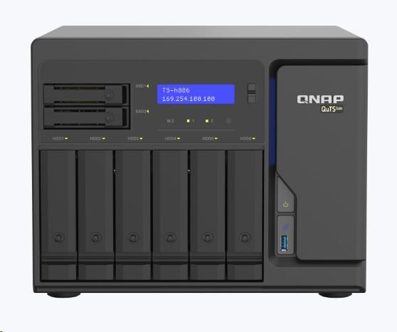 | Pozice pro diskové jednotky | 6 x 3,5" SATA 6 Gb/s, 3 Gb/s + 2 x 2,5" SATA 6 Gb/s, 3 Gb/s Systém se dodává bez HDD. Seznam kompatibilních disků HDD najdete na stránce https://www.qnap.com/compatibility/ |