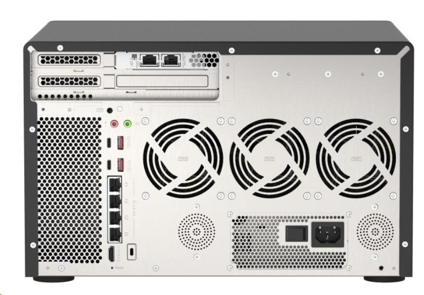 Vysokokapacitní zařízení TVS-h1288X je vybaveno výkonným procesorem Intel® Xeon® W a umožňuje instalaci dvou QNAP rozšiřujících karet QXP-T32P Thunderbolt™ 3 PCIe (prodávají se samostatně) k získání čtyř portů Thunderbolt™ 3, což z něj dělá perfektní doplněk pro uživatele Mac® a Windows® vybavené Thunderbolt™ pro vysokorychlostní spolupráci při zpracovávání médií. Integrované připojení 10GbE a 2,5GbE podporuje slučování portů a failover, aby dále vyhověly podnikovým aplikacím náročným na šířku pásma a spolehlivost. Zařízení TVS-h1288X využívá operační systém QuTS hero na bázi ZFS a podporuje blokovou inline deduplikaci a kompresi dat, téměř neomezený počet snímků, SnapSync v reálném čase a technologii ZFS cache pro čtení/zápis, což pomáhá vašemu podniku dosáhnout výkonu spolehlivosti na úrovni dohody o poskytování služeb, od kreativních pracovních toků po souborový server, virtualizační server a efektivní aplikace pro zálohování a obnovu souborů.