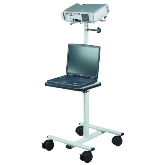 Stolek pod dataprojektory s nastavitelnou výškou 70-110cm na kolečkách. Univerzální uchycení dataprojektorů s možností naklápění +5°-20° / nosnost do 25kg. Odkládací deska 40x30cm / nosnost 5kg , celková hmotnost 8kg, barva bílá)..