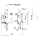 Nástěnný ocelový držák s minimální vzdáleností od stěny na velké LCD TV s uhlopříčkou 37"- 70" (94-178cm) a hmotností maximálně 35kg. Konzole na zavěšení TV s upevněnými držáky, vertikálně výklopný +0°/-12°, vzdálenost od stěny 30mm, rozměry 702 x 450 x 30 mm, barva černá. Uchycení VESA: 200x200, 300x200, 300x300, 400x200, 400x300, 400x400, 600x400. Fine Tuning pro snadné přesné ustavení po fixaci ke zdi..