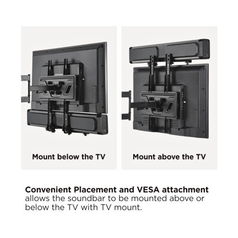 Držáky na reproduktor pod nebo nad TV - prodlužují jeho držák, 2ks - výsuvné 4-18,2cm, rozměry zvukového zařízení může být 40x182mm s šířkou 508-1143mm, maximální zatížení 15 kg, kombinace oceli a plastu, barva černá..