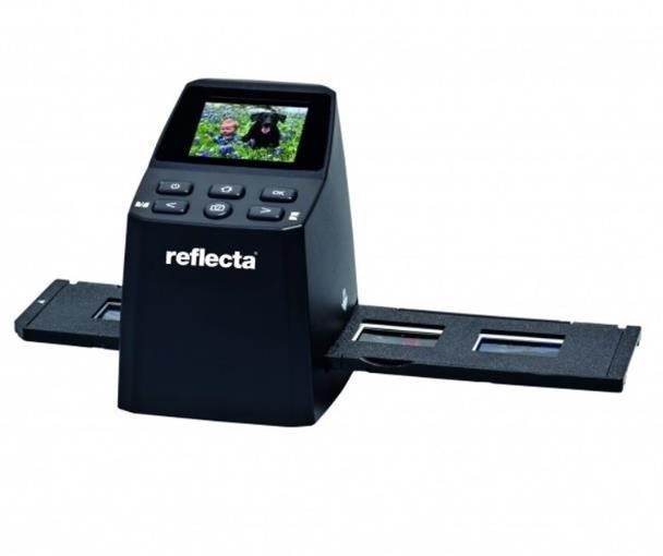 Filmový skener 8Mpx CMOS 1/4" s barevným 2,3" LCD monitorem a slotem pro SD-SDXC max 128 GB - možnost práce i bez PC. Rychlý 1s sken, 2440 dpi, interpolace na 16Mpx , PC/MAC, USB2. Součástí balení síťový zdroj 5V/1A, kabel USB, 2x držáky a čistící nástroj. Automatické nebo manuální nastavení expozice a barev. Manuální posun 4 diarámečků (max 3,2mm tloušťka) nebo 6 políček barevného i ČB filmu (negativ/pozitiv) v přiložených držácích. Barevný LCD monitor a SD slot velmi zjednodušují skenování bez nutnosti propojení s počítačem.