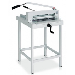 Pohodlné řezání do formátu A3, délka řezu 430 mm, hloubka vložení stohu 435 mm. Stroj má integrovaný soubor bezpečnostních prvků SCS. „Safety Cutting System“, který v sobě zahrnuje: transparentní bezpečnostní kryt na předním stole, aretace nože (páka v nejvyšší poloze), snadná a bezpečná výměna nože z přední strany bez nutnosti sundání krytů řezačky, pomůcka pro výměnu nože s ochranným krytem ostří, nastavení hloubky zářezu nože (z venku), jednoduché otočení / výměna řezací lišty (z venku). Podstavec je volitelné příslušenství. Rozměry bez podstavy (vxšxh): 400×880×880 mm, hmotnost 44 kg..