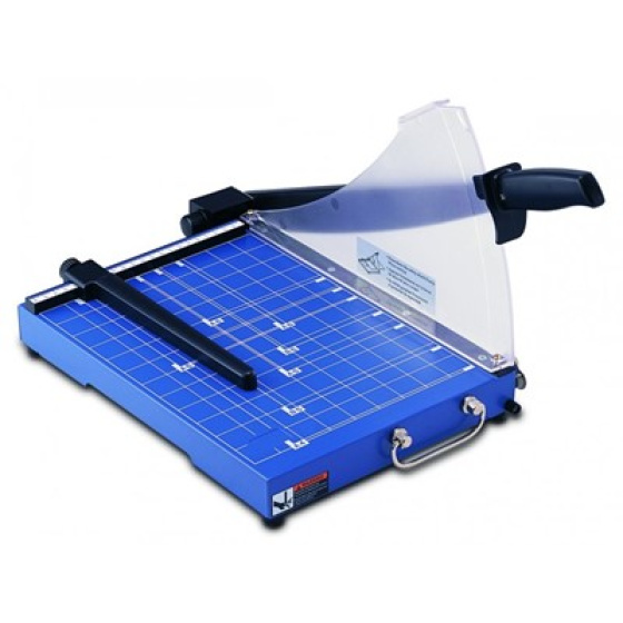 Páková řezačka na papír pro formát A4 (do 310 mm délky řezu) vhodná pro použití v kanceláři. Provedení s pevnou celokovovou základnou a posuvným dorazem. Je vybavena bezpečnostním krytem nože z odolného plastu, možností aretovat nůž ve spodní poloze. Základna řezačky má kovový úchop pro snadnou manipulaci. Max. tloušťka řezu 20 listů 80g papíru, ruční přítlak. Rozměry kovové základové desky 350×255 mm. Na desce jsou naznačeny formáty A4-A6. Rozměry: 385×405×410 mm, hmotnost: 2,7 kg.
