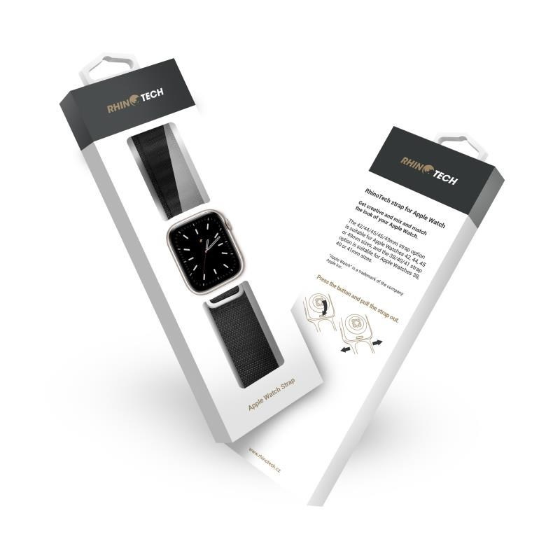 RhinoTech nylonový řemínek s upínáním na kovovou přezku pro Apple Watch se snadno nastavitelným provlékacím zapínáním. Tento odolný a pevný a lehký řemínek je navržený pro tréninkové aktivity, ale i pro každodenní nošení. Materiál z nylonové tkaniny pohodlně sedí na zápěstí a lehce se vyměňuje. Díky dostupnosti ve více barevných provedeních, můžete snadno přizpůsobit vzhled Vašich Apple Watch s Vaším aktuálním outfitem.