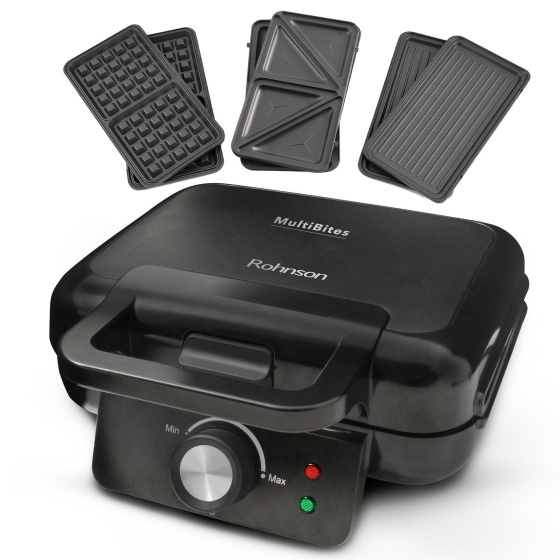 Rohnson R-2635 MultiBites sendvičovač, 1000 W, nepřilnavý povrch, regulace teploty, černá