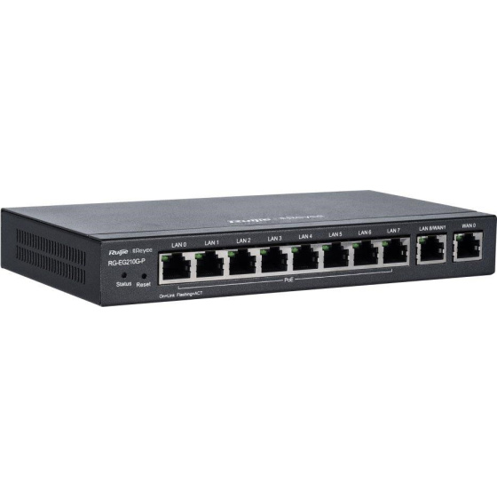 Registrace dealerské ceny: https://docs.google.com/forms/d/1sWwsswsbBk36eZx4CJrfl47qUvrORQyYz7kMjrt2f_c/prefill Popis produktu Ruijie RG-EG210G-P je kabelový Gigabitový router s PoE, dostatečným VPN výkonem pro obsloužení poboček a vzdáleně pracujících pracovníků v rámci firmy. Bezpečný a spolehlivý router s vlastním webovým managementem, možností správy přes Ruijie Cloud odkudkoliv, blokování obsahu podle typu aplikace, inteligentní Multi-WAN load balancing s možností využít až 2 WAN porty zároveň. Router nabízí 1 Gigabitovými WAN port, 8x Gigabit LAN, 1 Gigabitový LAN/WAN port, celkový výkon v NATu 600 Mbps a 802.3af/at PoE na prvních 8 portech s celkovým PoE budgetem 70W. Router pro přístup do lokální sítě umožňuje i několik možností VPN serverů a to konkrétně: IPsec, PPTP, L2TP a OpenVPN. Obsah balení • Zařízení • Napájecí adaptér 54V Technické parametry Konektory a rozhraní Rychlosti WAN:(1) 10/100/1000Mbps Možnost více WAN:Ano Rychlost LAN:(8) 10/100/1000Mbps + (1) 10/100/1000Mbps LAN/WAN Gigabit LAN:Ano Napájení Typ napájení:DC konektor Typy PoE:PoE-Out (pouze) Podporované PoE-Out standardy:802.3af, 802.3at Počet PoE Out portů:8 PoE budget [W]:70 Max. spotřeba energie [W]:10 Napájení přes konektor/svorkovnici:54V DC Fyzické charakteristiky Provedení:Desktop Ventilátory:Bez ventilátoru Šasi:Kovové Tlačítka:Reset Provozní teplota [°C]:0 až 40 Šířka [mm]:202 Výška [mm]:28 Hloubka [mm]:107 Hardware Frekvence CPU [MHz]:1350 Obecné Propustnost NAT [Mb/s]:600 Software Podporované VPN:PPTP, L2TP, IPSec, OpenVPN Web management:Ano Management:Webové rozhraní, Ruijie cloud Podpora IPv6:Ano Výchozí IP adresa:192.168.110.1 Výchozí jméno a heslo:Nastavuje se při prvním spuštění.