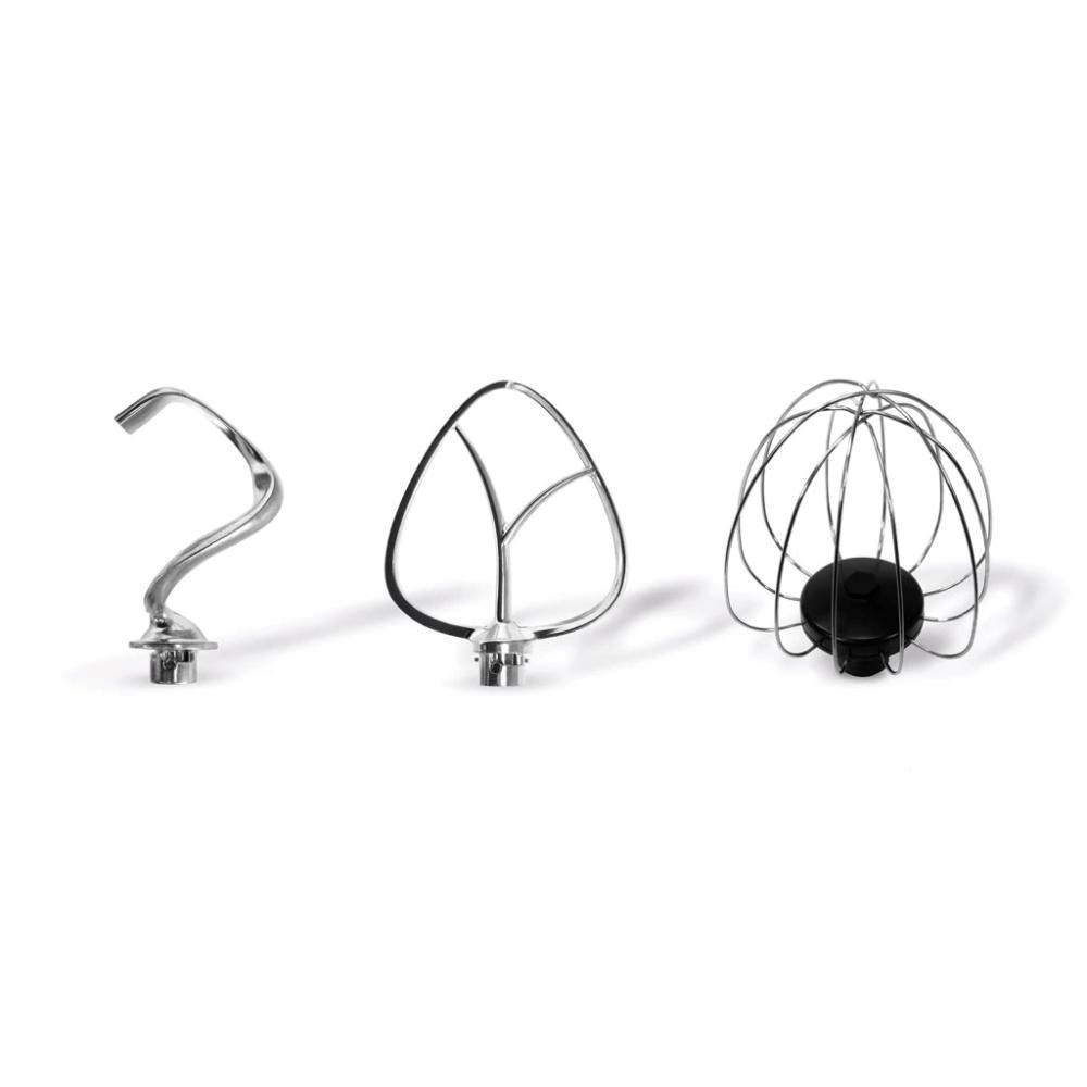 Šlehací balónová metla dokáže vyšlehat bílky do takové pevnosti, že můžete klidně otočit mísu vzhůru nohama – a bílky se ani nehnou. Perfektně našlehaná šlehačka či krémový pudink? Hotovo během chvilky! Ultralehká hliníková míchací metla zase s lehkostí zvládne piškotová těsta na dorty či palačinky a hutnější pomazánky. Speciálně tvarovaný hnětací hák pak hravě zpracuje hutná těsta na pizzu či chléb, ale také domácí rohlíky, křupavé housky nebo vláčné briošky na burgery. Taky už se vám sbíhají sliny?