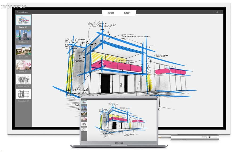 Uživatelské rozhraní obrazovky Samsung Flip bylo navrženo pro snadnou navigaci a rychlý přístup ke všem důležitým funkcím. Ovládací prvky i snadné prohlížení vytvořených dokumentů máte vždy na dosah. Náhled obsahu i možnost jeho rychlé úpravy před publikováním jsou samozřejmostí.