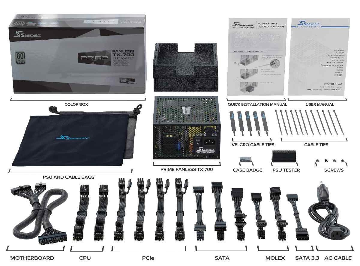 | Connector quantity | 1 x Main Power (24P / 20P) 610 mm 2 x EPS 12 V / ATX 12 V (8P / 4P) 650 mm 4 x PCI-E (8P / 6P) 10 x SATA 5 x Peripheral (4P) 1 x Model to SATA 3.3 Adapter |