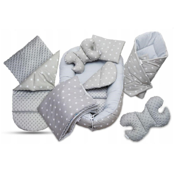 Set do postýlky - 7dílná sada Šedá s hvězdami