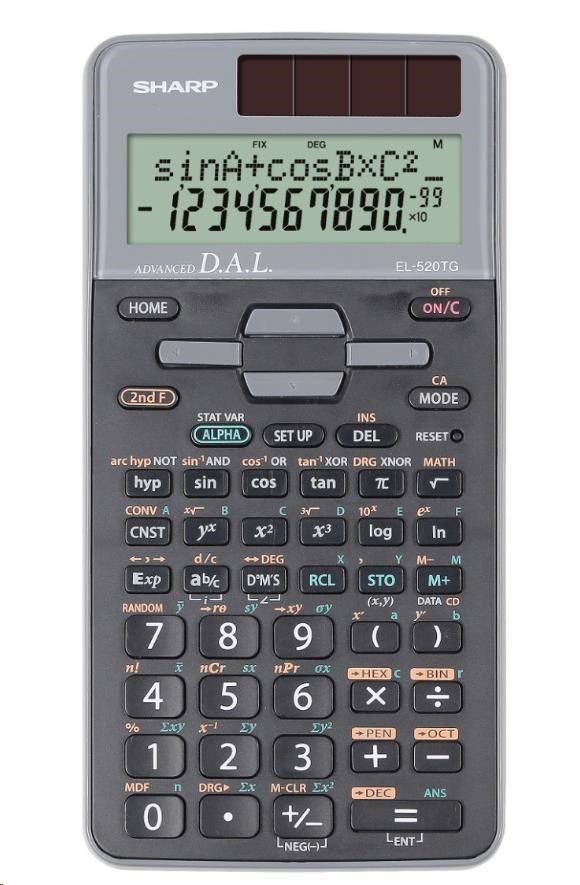 Vědecký kalkulátor EL-520TG obsahuje 400+ vestavěných funkcí a je vhodný pro studenty středních škol a univerzit. Má solární napajení se záložní baterií, přehledný 2řádkový displej a pevný plastový kryt, který chrání kalkulátor před poškrábáním a pády.