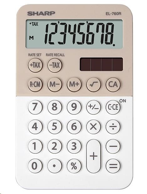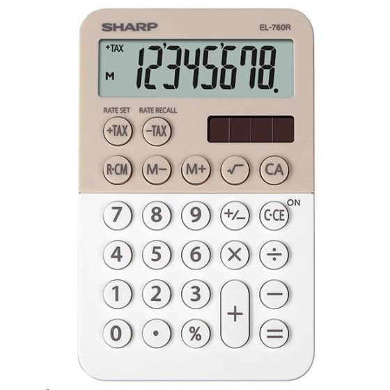 Nový stylový kalkulátor s kompaktním tělem, 8mistným displejem, duálním napájením a +TAX/-TAX funkcí.