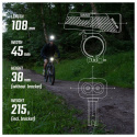6 světelných režimů: High (1600 lm), Mid (1100 lm), Low (500 lm), Eco (150 lm), Night Flashing (800/400 lm), Day Flashing (200 lm)