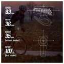 • Doba svícení: 2 h v režimu High, 7 h v režimu Low, 4.5 h v režimu Day Flashing, 6.5 h v režimu Night Flashing, 12 h v režimu Eco Flashing