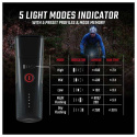 Stiskem ovládacího tlačítka se na třístupňovém indikátoru baterie zobrazí, kolik energie v baterii ještě zbývá. Lze tak v případě potřeby přepnout do úspornějšího světelného režimu.