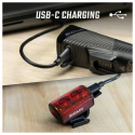 Světlo Buster RL 80 je vybaveno integrovanou lithium-iontovou baterií, která se nabíjí kabelem USB-C. Světlo se nabijí dvě hodiny. Odpadá tak nejen otravná výměna baterií, ale světlo zároveň šetří zdroje a je udržitelné.