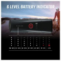 LED kontrolky 6-ti stupňového indikátoru baterie během jízdy neustále přesně signalizují, kolik energie ještě zbývá. Ve vypnutém stavu stačí pro zjištění stavu baterie krátké stisknutí tlačítka On/Off. Lithium-iontovou baterii lze dobít kabelem USB-C do 4 hodin. Indikátor nabíjení v 5-ti stupních ukazuje, jak daleko proces nabíjení pokročil.
