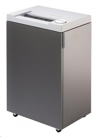 Komfortní obsluha. Výkonný skartovač se vstupní šířkou 240 mm pro intezivní využití. Nově integrována světelná indikace zátěže stroje. Kapacita skartace až 15 listů 70g/m2 papíru v řezu 4×40 mm. Popis: „SPS“ – patentované bezpečnostní a ochranné funkce: elektronicky řízená jistící klapka v místě vstupu, automatický zpětný chod při ucpání papírem a následné vypnutí, automatické vypnutí po naplnění odpadní nádoby, elektronická kontrola uzavření dvířek podstavy, dvoustupňové jištění motoru, úsporný režim „ZERO ENERGY“ (absolutní vypnutí odběru el. energie po 30 min ve stavu Stand-by). Vícefunkční přepínač „EASY-SWITCH“ s přehledným menu a barevnou světelnou signalizací provozu a indikací míry zátěže, automatická start/stop funkce pomocí optického senzoru, nože z tvrzené speciální oceli odolné vůči kancelářským sponkám a kreditním kartám, výkonný motor 390 W, vysoce kvalitní dřevěná skříňka (objem 50L) s odolným kováním a kolečky pro pojezd, mechanicky odolný snadno uchopitelný plastový odpadní koš objemu 35 L, vyrobeno v Německu. Rozměry (V x Š x H): 635×395×291 mm. Hmotnost: 21 kg..