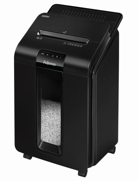 Vstupní model z řady automatických skartovačů značky Fellowes. Jen nalož, zapni a běž. Automatický skartovací stroj Vám šetří čas strávený vkládáním skartovaných papírů. Zařízení je schopno na jeden pracovní cyklus při automatickém podávání skartovat až 100 listů 70g papíru v křížovém miniřezu řezu 4×10 mm. Objem koše 23L. Skartovač je vybaven vstupní štěrbinou pro ruční podání až 10 listů papíru. Řezací mechanismus zpracuje při manuálním podávání sešívačkou sešité papíry a kreditní karty. Pojezdová kolečka. Ovládání je zajištěno prostřednictvím dotykového panelu s LED podsvětlením. Samozřejmostí je indikace přehřátí, plného odpadního koše. Délka nepřetržitého pracovního cyklu 15 min. Automatický ochranný systém proti přehřátí. Řezné nože ze speciální tvrzené oceli, silný motor a robustní převodové součásti předurčují AutoMax pro dlouhodobé a bezproblémové využití. V případě nečinnosti delší než 2 min se stroj automaticky vypne – „Sleep MODE“, šetří tím odběr el. energie. Předurčen primárně pro jednoho uživatele. Objem koše 23 litrů, vysouvací odpadová nádoba uvnitř pro snadnou manipulaci. Rozměry (Š x H x V) 370×330×640 mm, hmotnost 13,2 kg, napájení 230–240 V/ 50Hz..