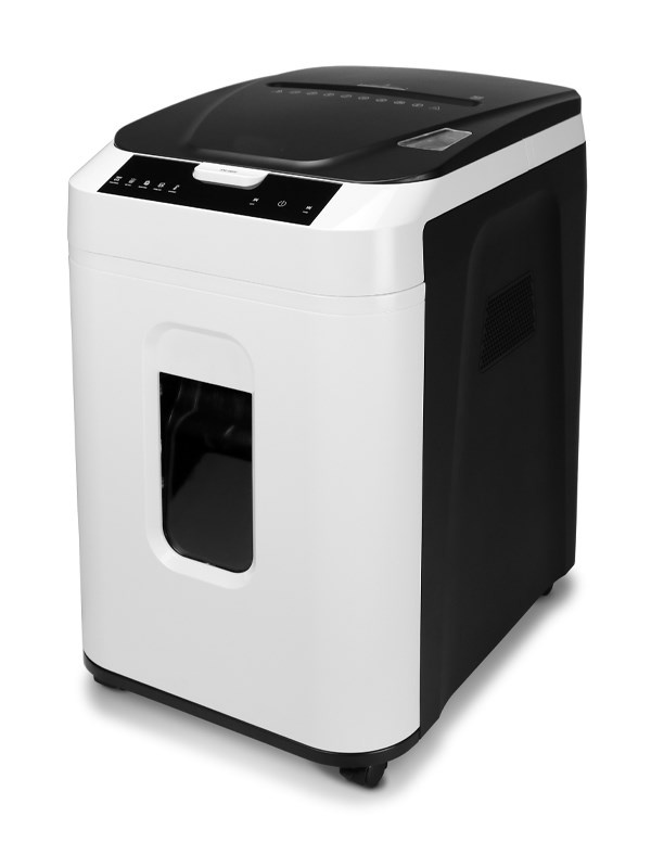 Automatický skartovací stroj atraktivního designu s kapacitou zásobníku na 180 listů pro střední kanceláře. Vhodný pro skartaci dokumentů o šířce 220 mm. Stroj je standardně vybaven automatickým systémem start/stop, zpětným chodem, tepelnou pojistkou motoru proti přehřátí, signalizací přeplněného koše. Příležitostně lze skartovat sešívací sponky a kreditní karty. Šíře vstupu: 220 mm Velikost řezu: 2 x 12 mm Kapacita při manuálním vložení, papír DIN A4, 70 g/m2: 10 Kapacita automatického zásobníku: 180 listů Stupeň utajení dle nové DIN 66399: P-5 Řezný mechanismus skartuje CD, kreditní karty a sponky: ne Rychlost: 0,05 m/s Velikost koše: 32,2 litrů Hlučnost motoru: < 55 dB Připojovací parametry, Watt / Volt/Hz ( střídavý proud ): 500 W /230 / 50 / 1~ Délka nepřetržité skartace: 60 min Tepelná pojistka motoru proti přehřátí: dvojitá Automatický start/stop: ano Aut. zpětný chod / aut. vypnutí při ucpaném koši: ano Elektronické zabezpečení dveří: elektronické s LED kontrolkou Pojezdová kolečka: ano Rozměry, mm ( v x š x h ): 555 x 365 x 265 Hmotnost: 16,1 kg.