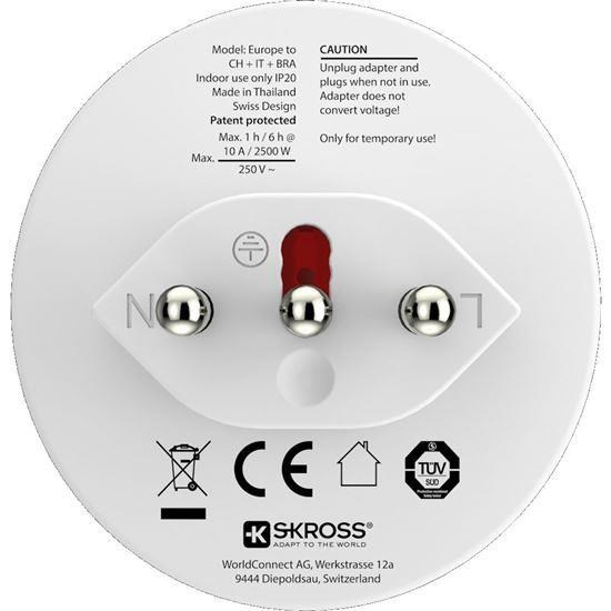 Popis SKROSS cestovní adaptér pro použití v Brazílii, Itálii a Švýcarsku, typ J/N/L