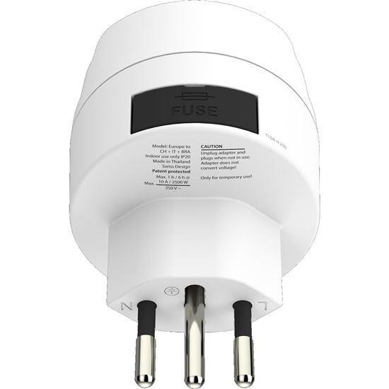 Cestovní adaptér s uzemněním, max. 10A, pro obyvatele Evropy navštěvující Brazílii, Itálii nebo Švýcarsko, patentovaný mechanismus pohyblivého uzemňovacího kolíku, jeden adaptér umožňuje připojení v 15 zemích světa, Schuko uzemnění zásuvky - funkční pro univerzální vidlice.Více
