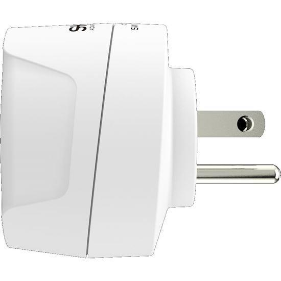 Cestovní adaptér s uzemněním, max. 15A, pro obyvatele Evropy, navštěvující USA a země s USA standardem. Schuko uzemnění zásuvky - funkční pro univerzální vidlice, lze použít i spotřebiče s 2-kolíkovou šňůrou, nová bezpečnější konstrukce.Více